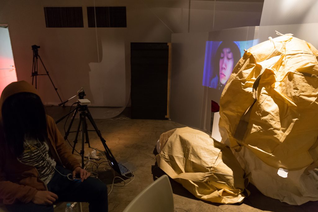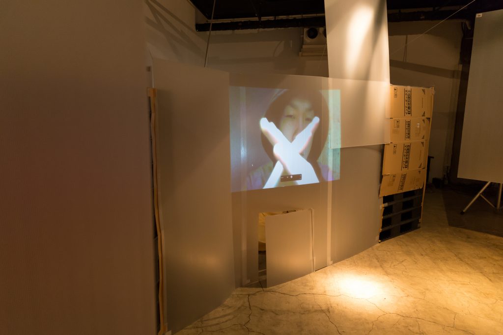 中味の詰まった人間を磨り潰し、箱や袋で包んで吸収し、空っぽでペラペラな存在に変えること。フロアに横たわる半紙半人の死体もまた、充実した立体的身体からペラペラな面的身体への移行形態を示すと考えることもできるだろう。「人類最後の日々 Last Days of Humanity」とは、そんなペラペラな「空っぽ性」へと向かう行程なのだろうか。